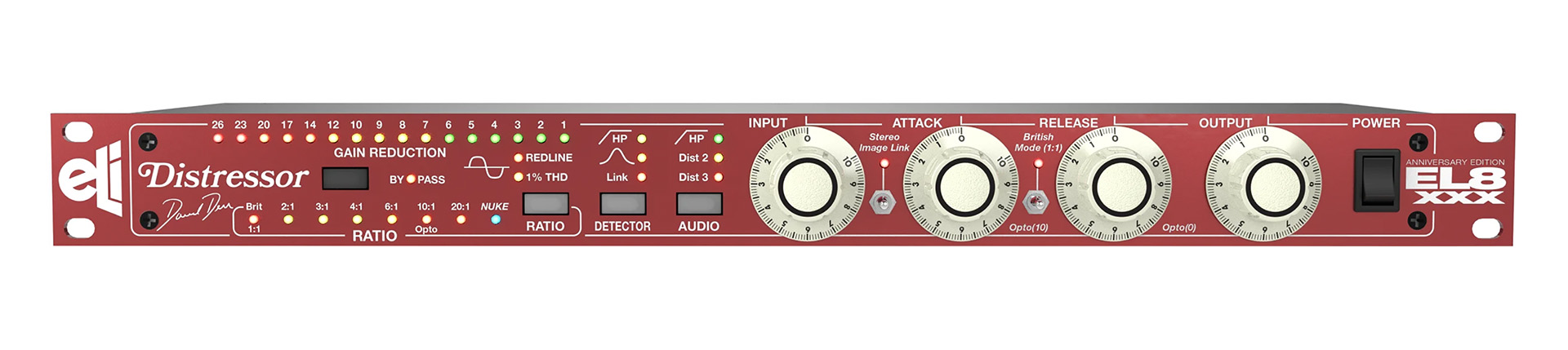 EL8-XXX は、Distressor EL-8 の発売30周年を記念して製作されたリミテッド・エディションです。EL-8X に搭載されている機能(Stereo Image Link、British Mode)に加え、入力段には Pultec EQ に採用されていたことでも知られ、低域の明瞭さや大きな音像を加える TRIAD MAGNETICS HS-56 トランスを新たに搭載しています。