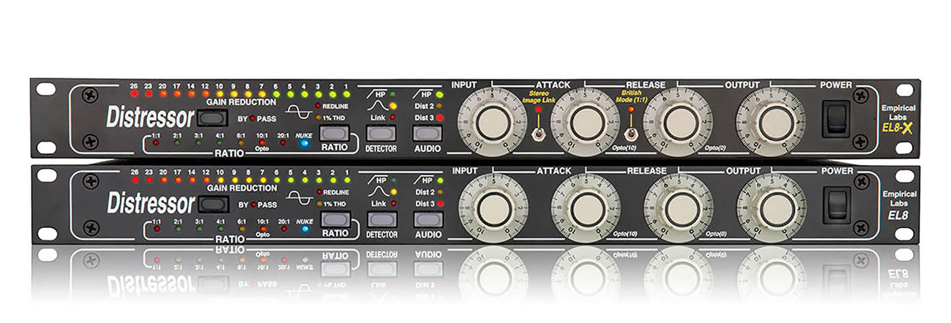 Empirical Labs Distressor EL-8 は、伝説的なダイナミクス・コントロールとトーン・シェイピングを実現するモダン・アナログ・コンプレッサーです。また、EL-8X はユニークなコンプレッション・カーブ、3種類のディストーション、ブリティッシュ・モード、ステレオ・イメージ・リンクといった機能も備え、世界中のトップ・スタジオで定番コンプとして使用されています。
