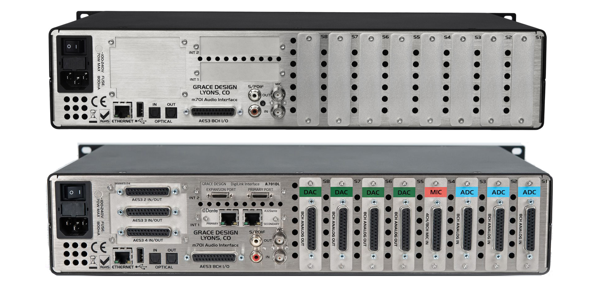 GRACE design m701 は、プロフェッショナルおよび商業スタジオ向けに開発され、拡張性とメンテナンスのしやすさを実現したモジュラー構造を採用したマルチチャンネル・オーディオインターフェースです。
