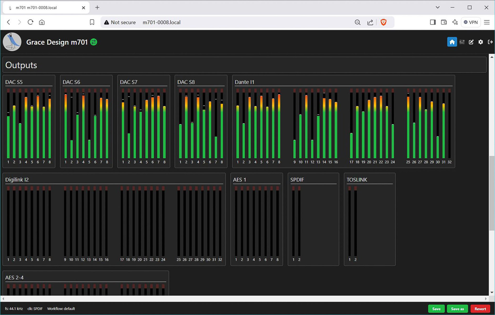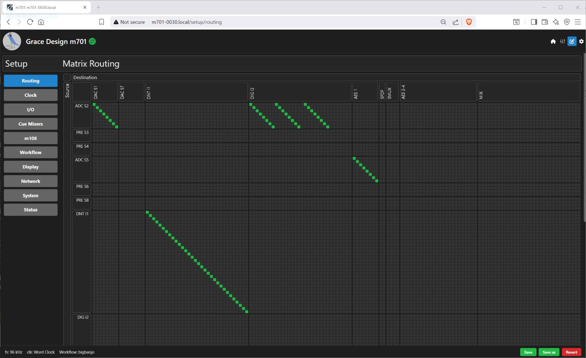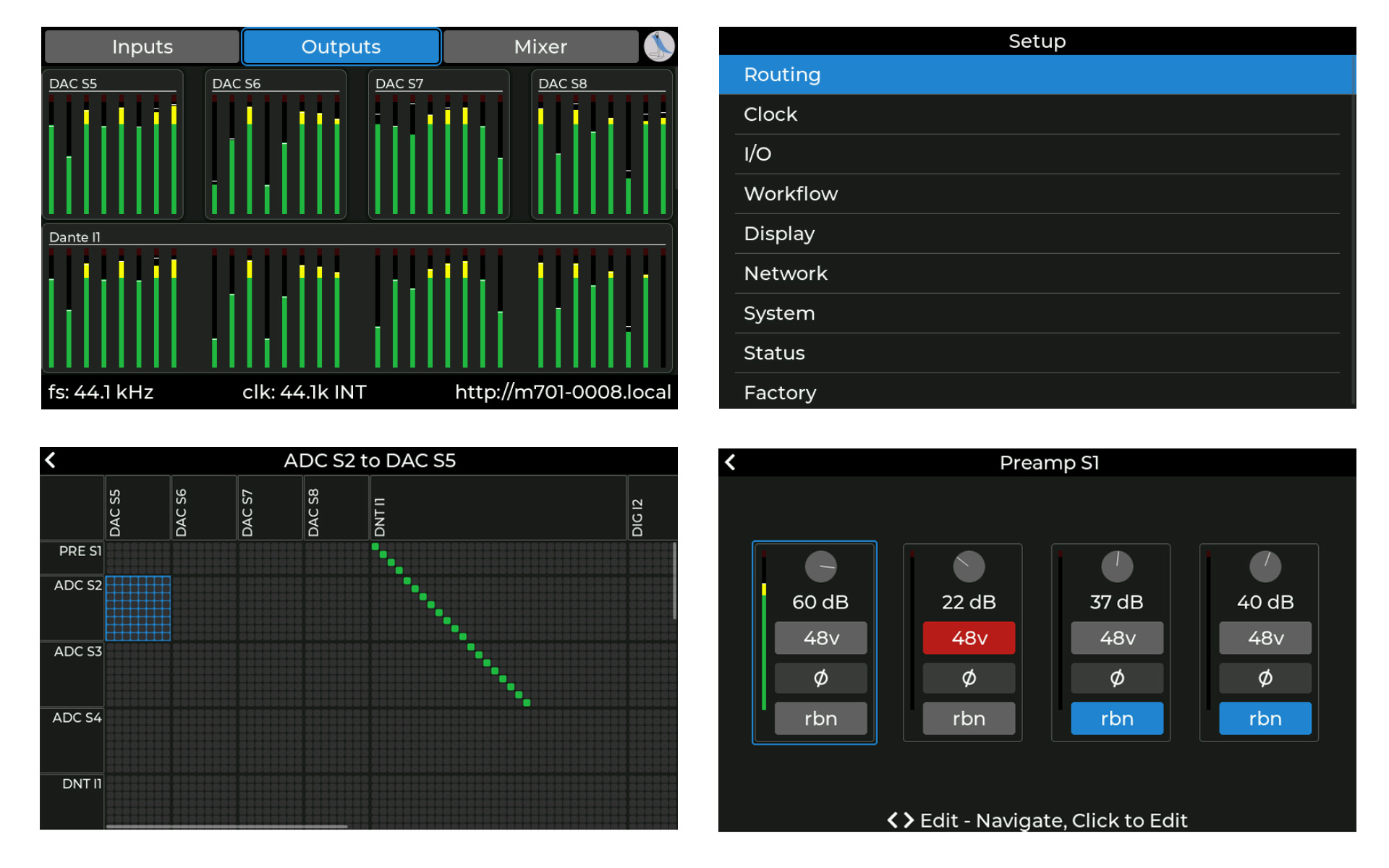ルーティングやクロックなどの各設定などは、本体 LCD ディスプレイからだけでなく、Web ベースのコントロールソフトウェア 「GraceNet」 から操作可能です。GraceNet は m701 本体に内蔵されているため、追加のインストールは不要。Windows/Mac いずれの環境でも Webブラウザからすぐに利用できます。
