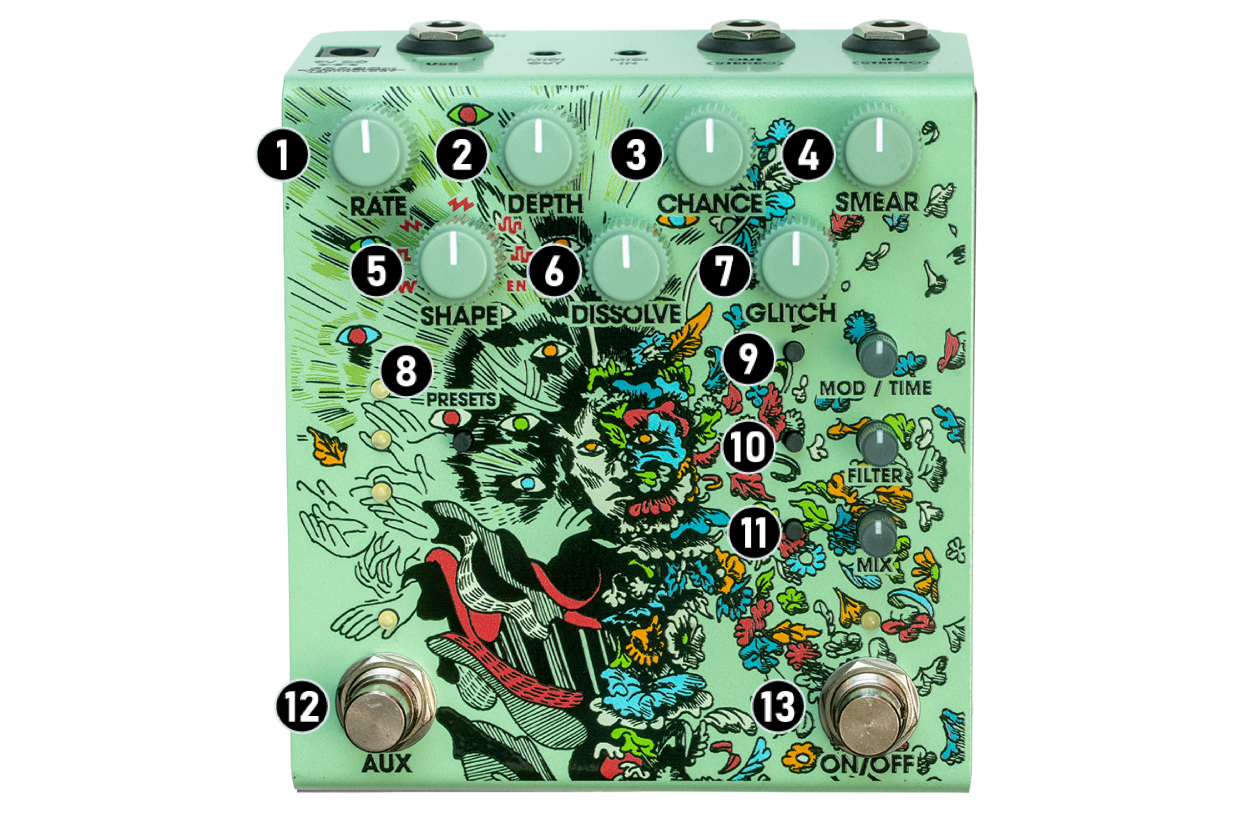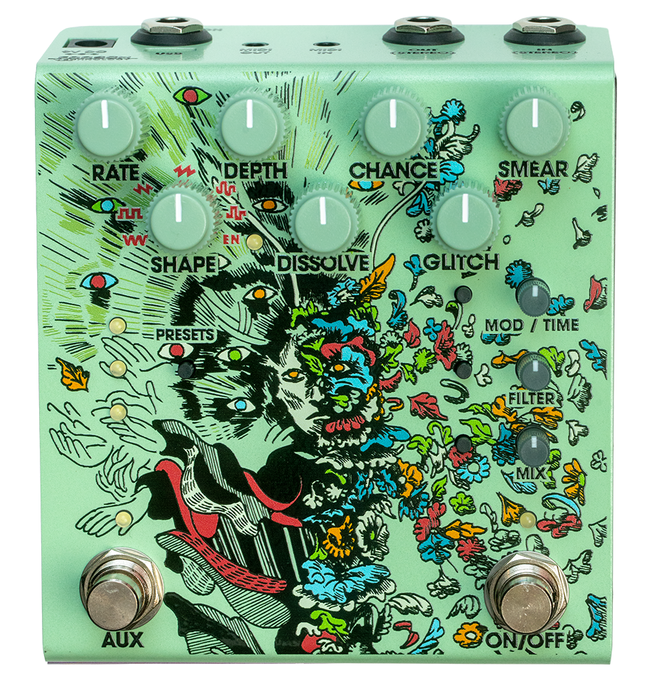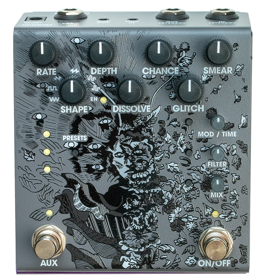 予測不可能を持った偶然のモーメントがグリッチディレイの破裂をもたらし、トレモロやビブラートでモジュレーションされ、フィルターを適用。ローファイなエイリアシングに溶解したり、ストレッチされたリバース再生へと変化する。更に、これらはすべて自身のオクターブや半音へ予期せぬジャンプをすることもある。