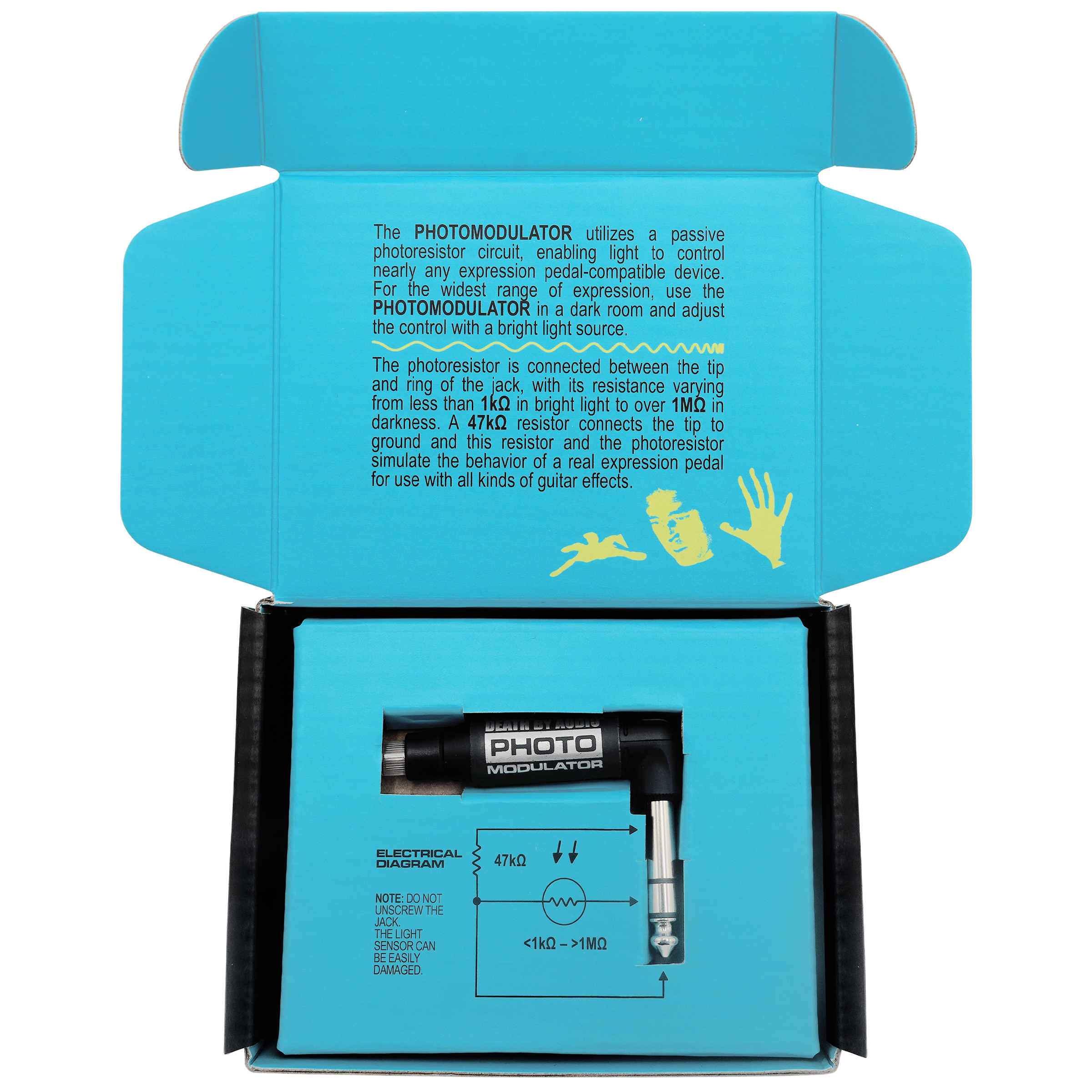 PHOTO MODULATORは光に反応する、コンパクトなエクスプレッションコントローラー。エクスプレッションに対応したデバイスを、あらゆる光源を用いてコントロールすることが可能になります。